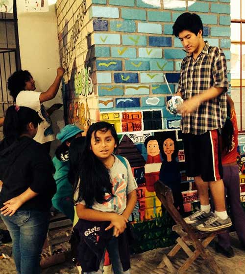 Pintando un mural para la biblioteca en el Voluntariado humanista.